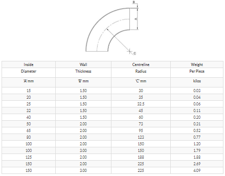 LONG RADIUS 1.5D PIPE BEND DIMENSIONS